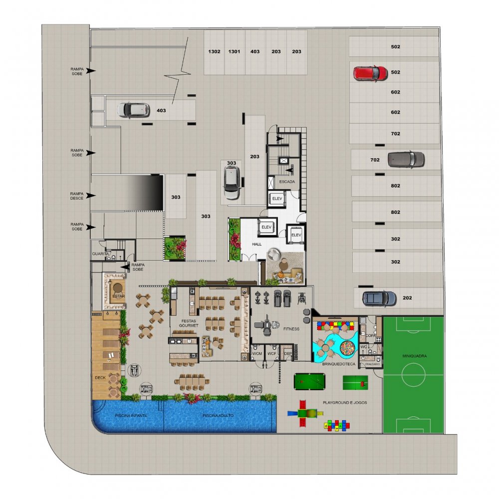 - Cobertura 04 suítes sendo 01 master com closet, DCE completa, Espaço gourmet, Sala de Estar/Jantar, Lavabo, Varanda, Piscina privativa com bar, deck e chuveirão, Terraço descoberto com lavabo. 292,44m²