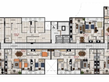- 03 quartos sendo 01 suíte e 01 suíte conversível, Sala de estar/jantar, Varanda gourmet, Cozinha e Área de serviço com WC. 79,89m²