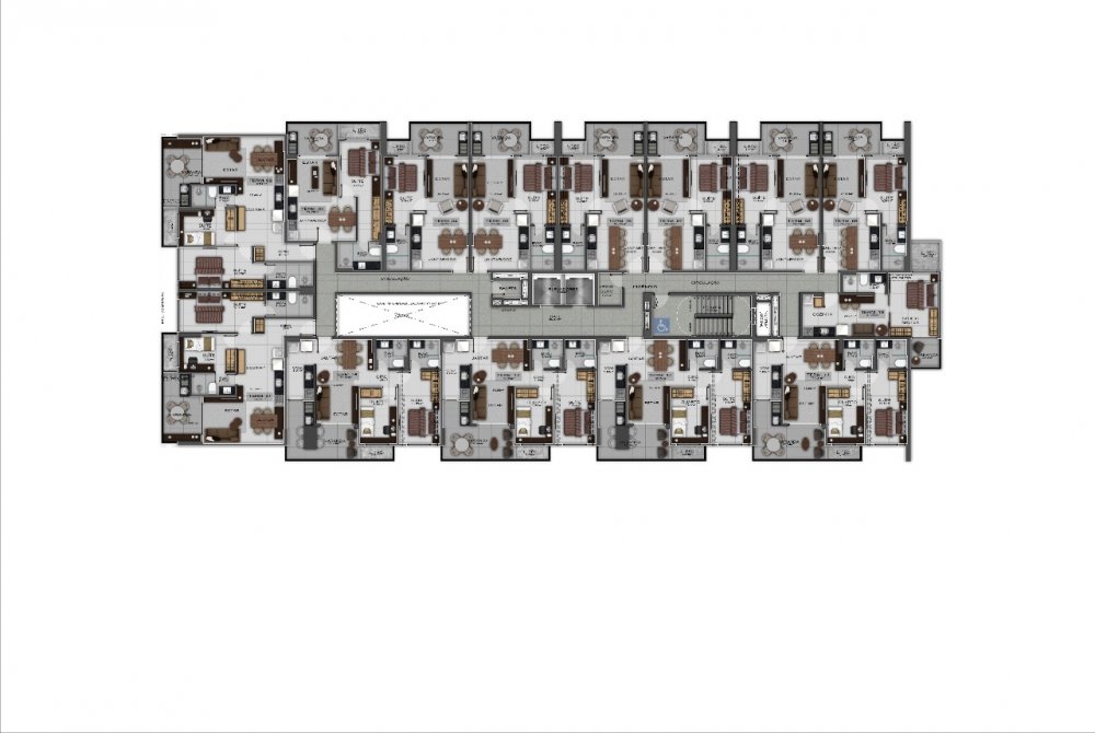 - Quarto/Sala 01 Quarto, Sala de Estar/Jantar, Varanda, WC social, Cozinha e Área de serviço. 49,73m²