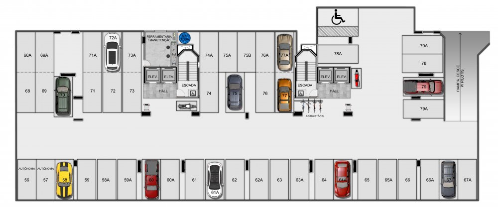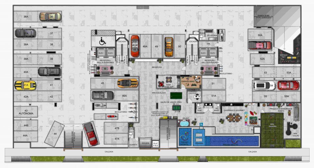 Subsolo, Pilotis, Mezanino, Pavimentos Garagem, 12 pavimentos Tipo sendo 06 apartamentos por andar e 01 pavimento Cobertura com 04 apartamentos