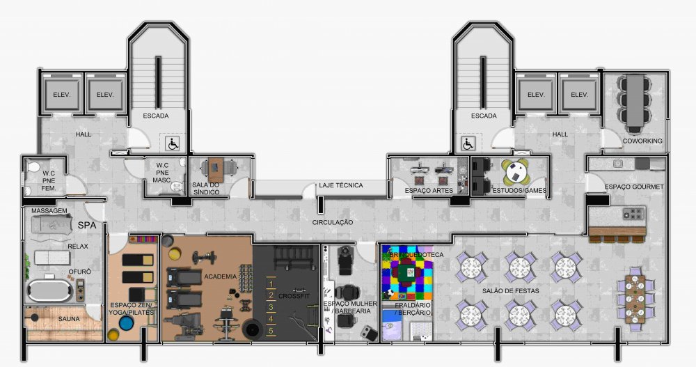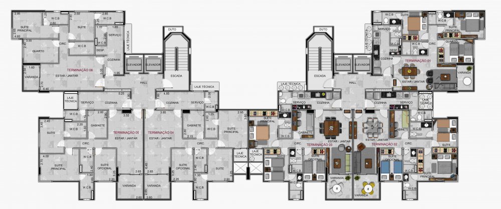 - Cobertura 03 suítes sendo 01 master, DCE completa, Sala de Estar/Jantar, Lavabo, Gabinete, Terraço coberto e descoberto, Piscina privativa, Cozinha e Área de serviço. 148m²