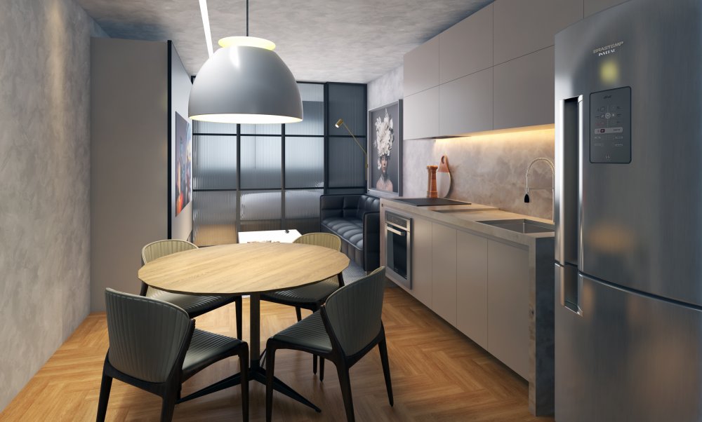 - Quarto/sala sendo 01 suíte, Sala de Estar/Jantar, Varanda, Cozinha e Área de Serviço. 37,15m²
