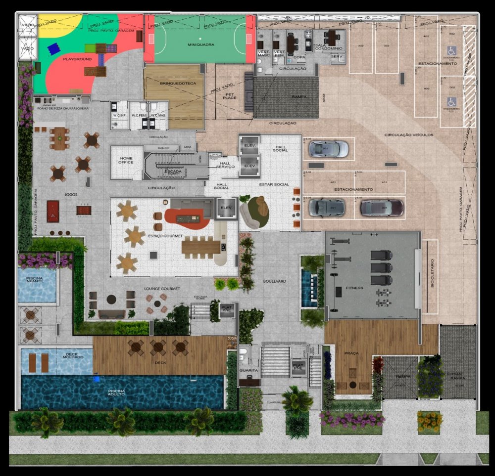 - 04 suítes sendo 01 master, DCE completa, Sala de Estar/Jantar, Varanda gourmet, Lavabo, Cozinha, Despensa e Área de serviço. 270,62m²