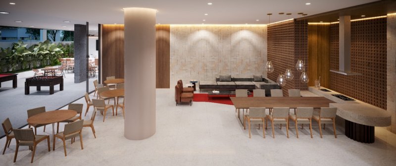 Espaço gourmet com lounge integrado