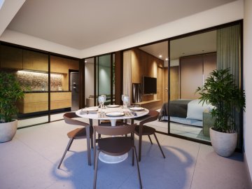 - Quarto/Sala Duplex sendo 01 suíte com varanda, Sala com varanda, WC social, Cozinha e Área de serviço.