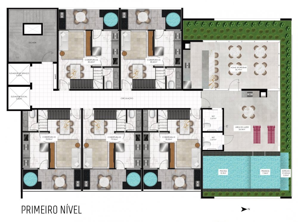 - Área Privativa: 22 m²