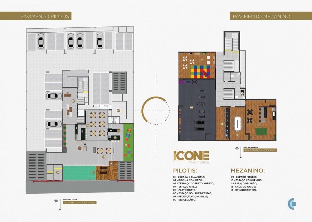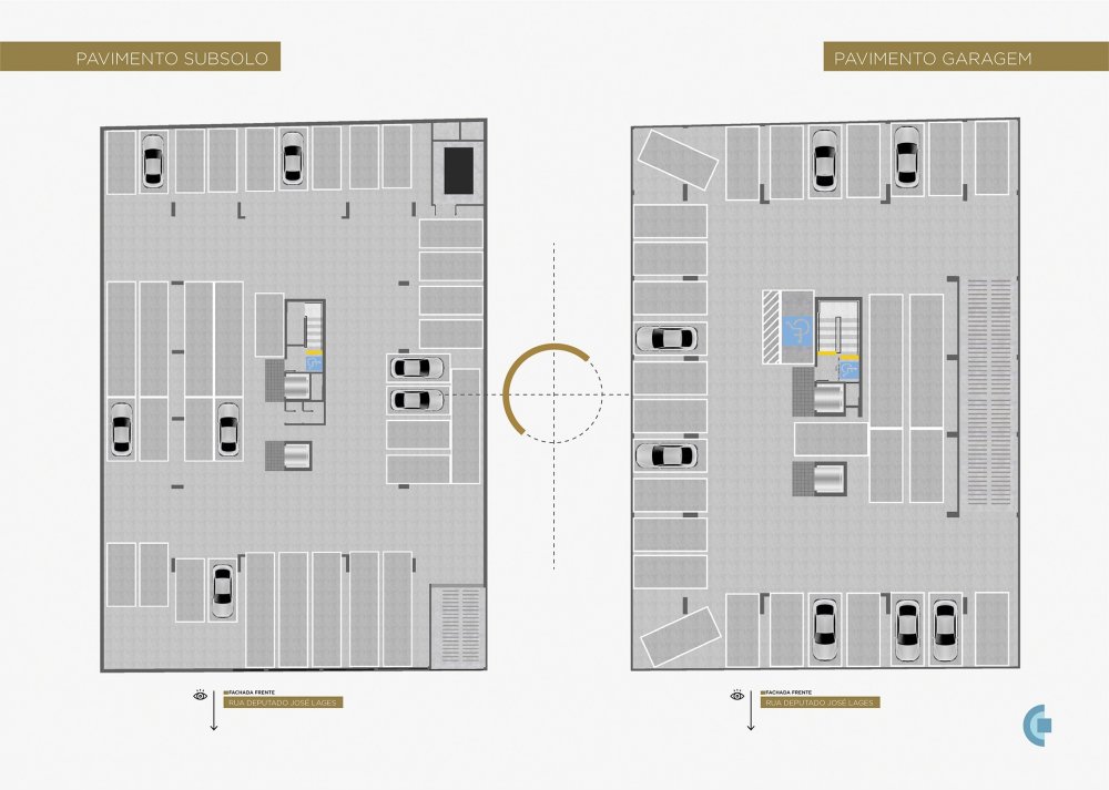 Subsolo, Pilotis, Pavimento garagem, Mezanino e 10 pavimentos tipo com 10 apartamentos por andar