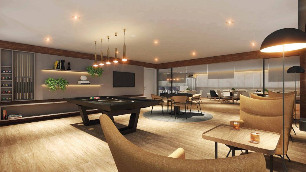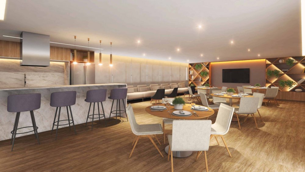 Salão de festas com espaço gourmet