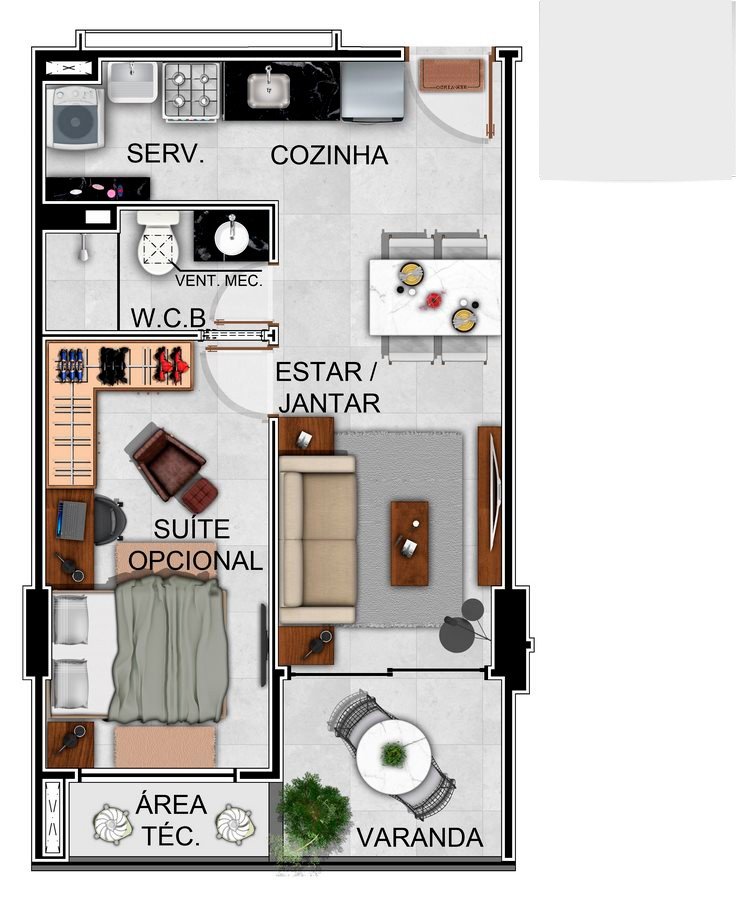 - Área Privativa: 43,75 m²