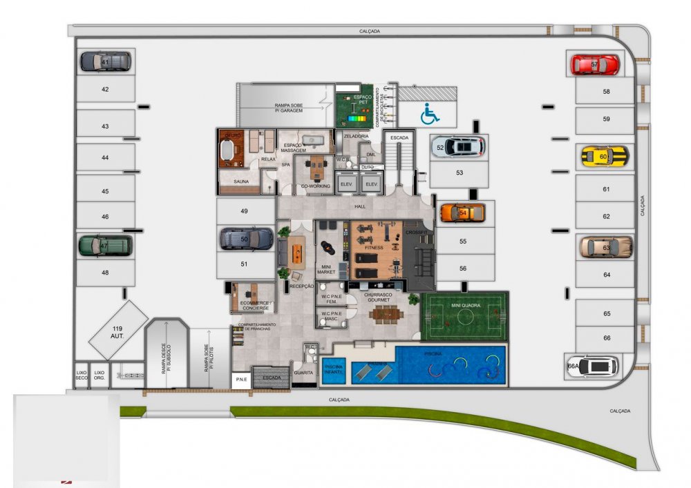 Piscina com prainha e acessibilidade