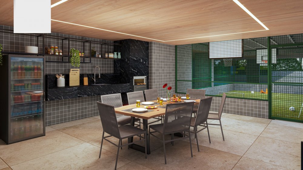 Salão de festas com espaço gourmet