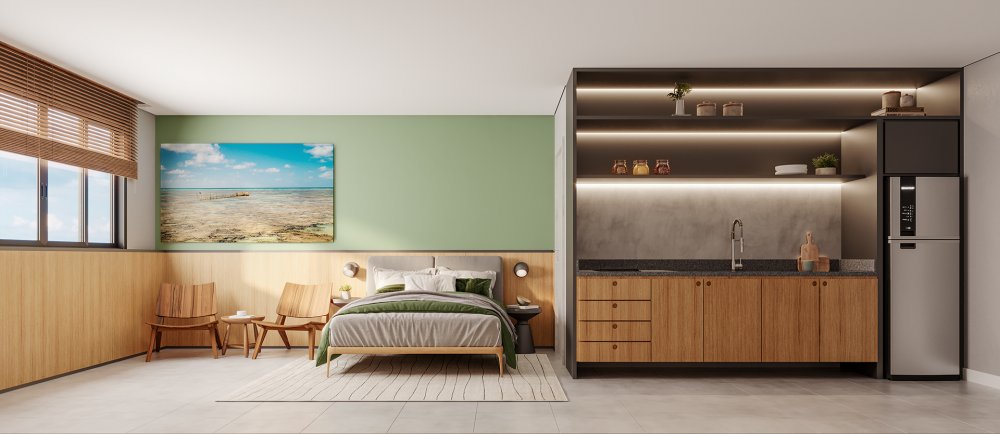 Studio [29m²] ÷ em 100 meses, 200m da Praia, Ponta Verde