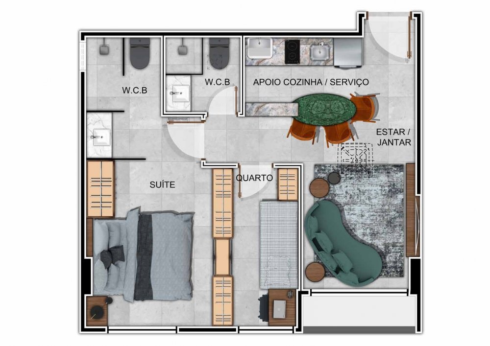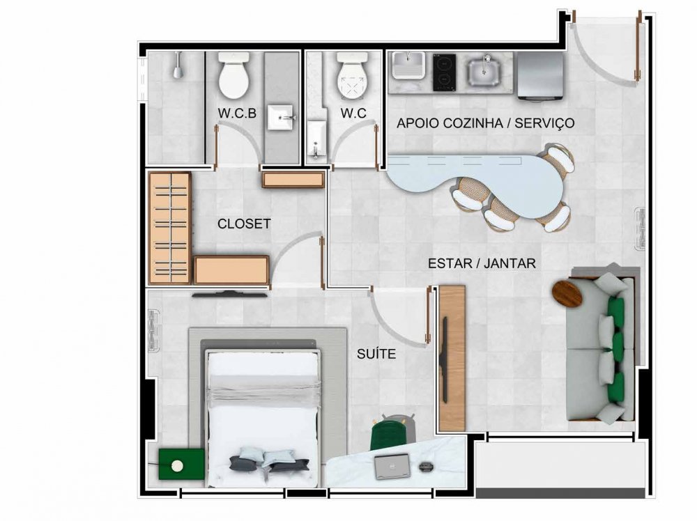 - Área Privativa: 46 m²