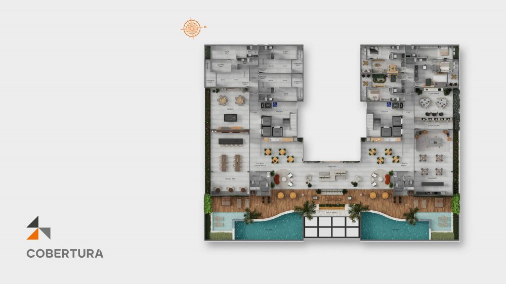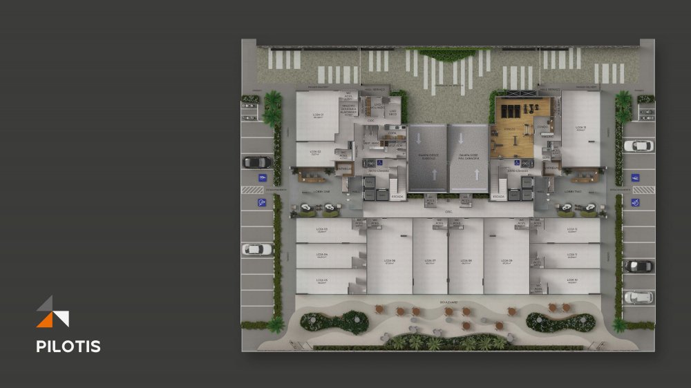 02 torres denominadas Next Home One e Next Home Two, Lojas comerciais, Subsolo, Pilotis, 2 pavimentos garagem, Pavimento tipo e Pavimento cobertura