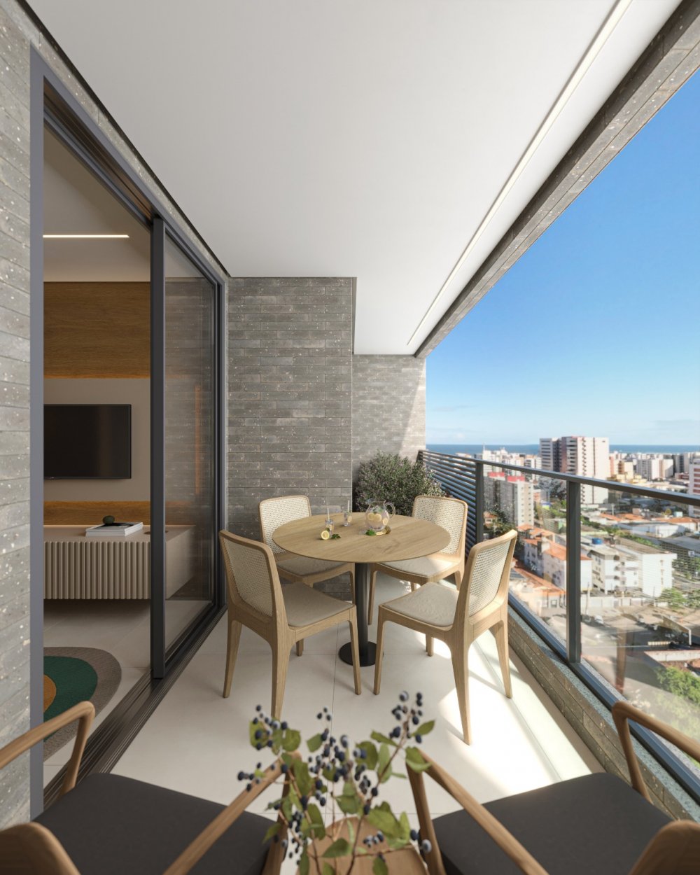 - 02 suítes, sendo 01 suíte reversível, Sala de estar/jantar, Varanda, WC social e Cozinha.