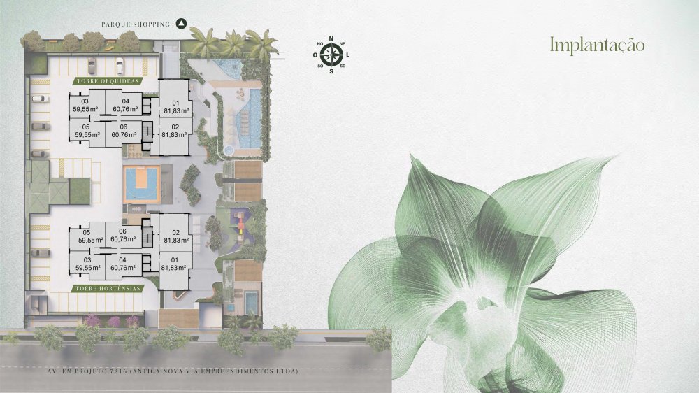 02 torres denominadas Torre Hortênsias e Torre Orquídeas